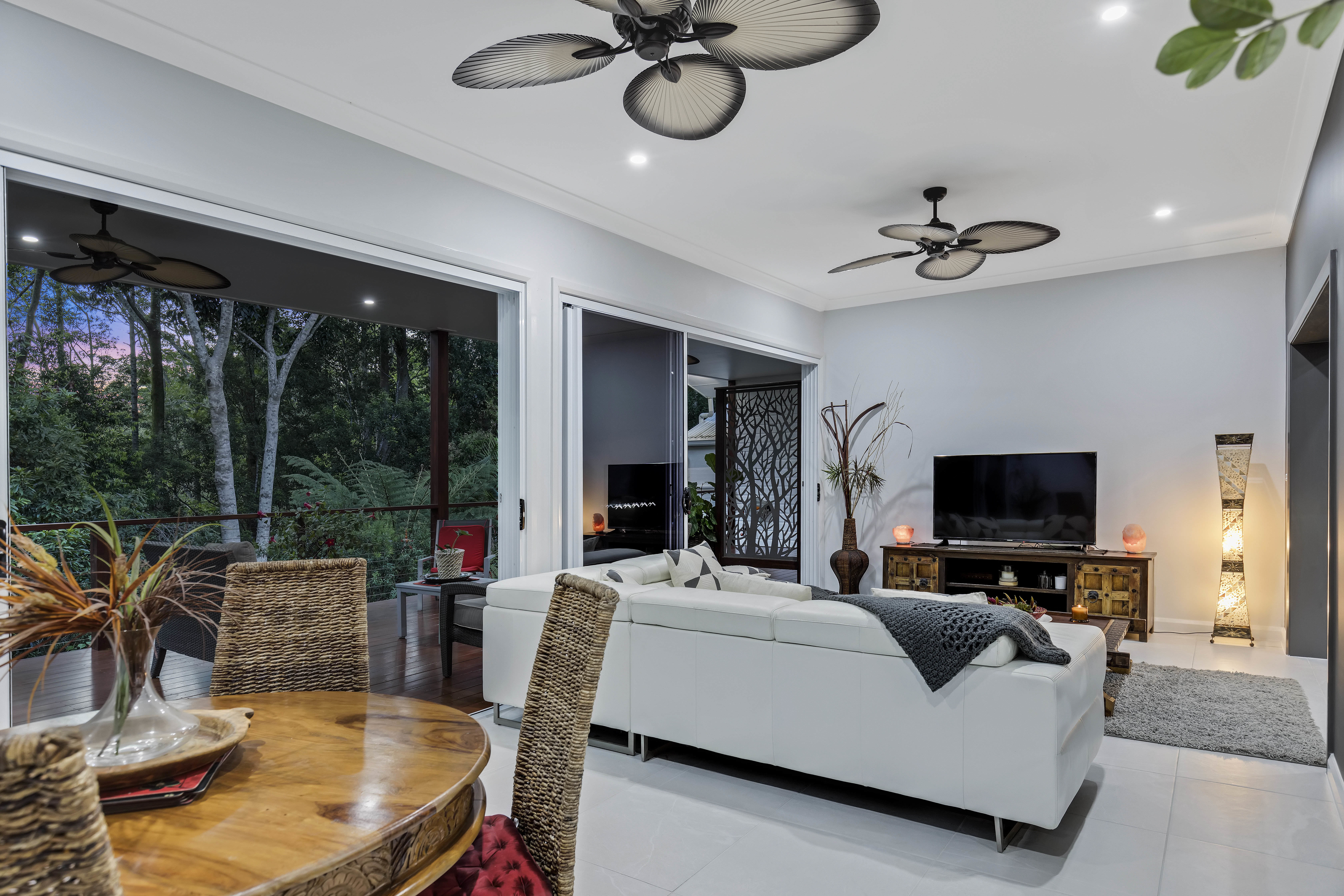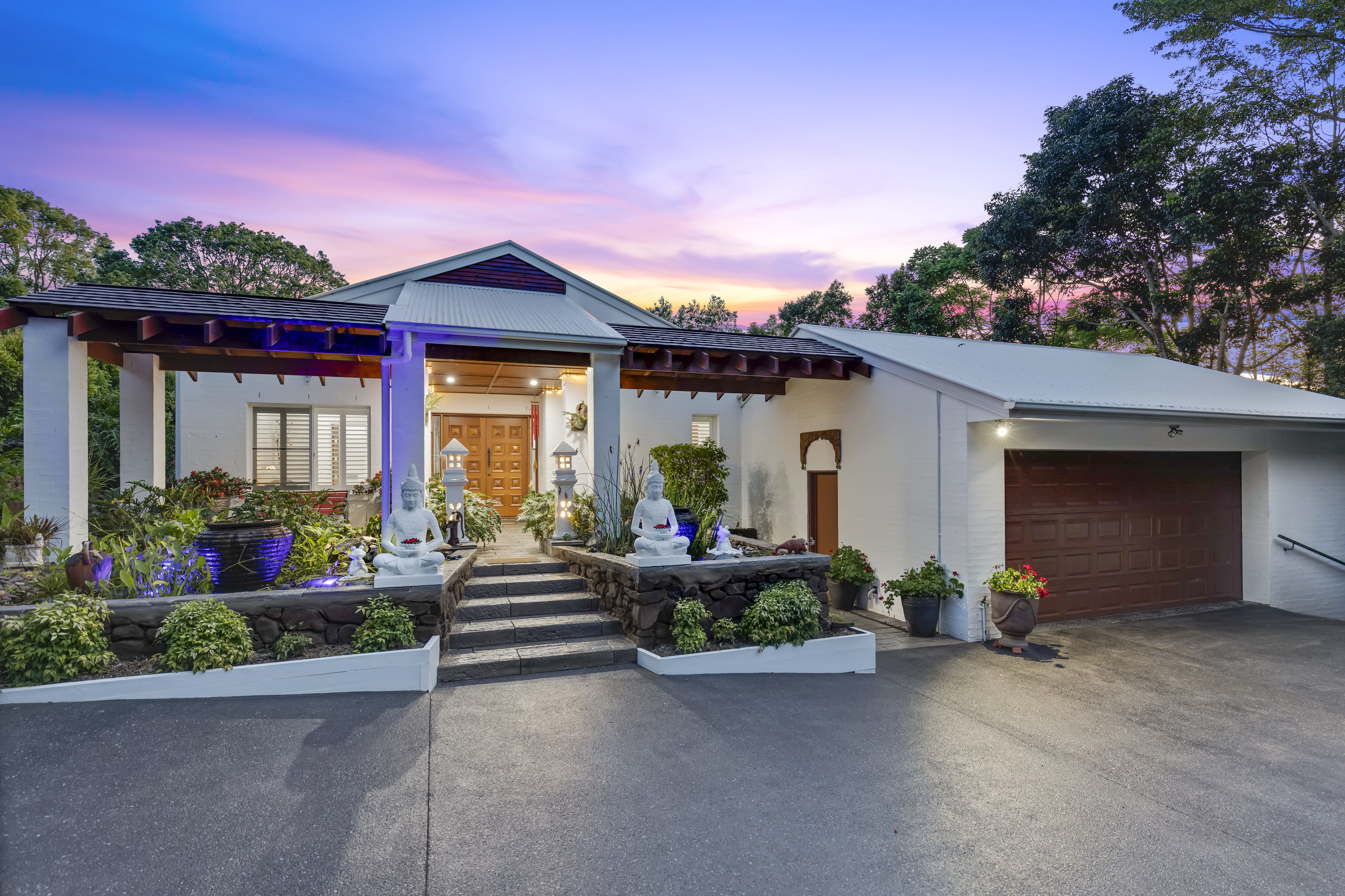 Situated at the end of a long driveway on 7738m2 in an elevated position with ajacant gardens and lush rainforest, is this superb completely renovated one level Balinese lifestyle home with a real point of difference.