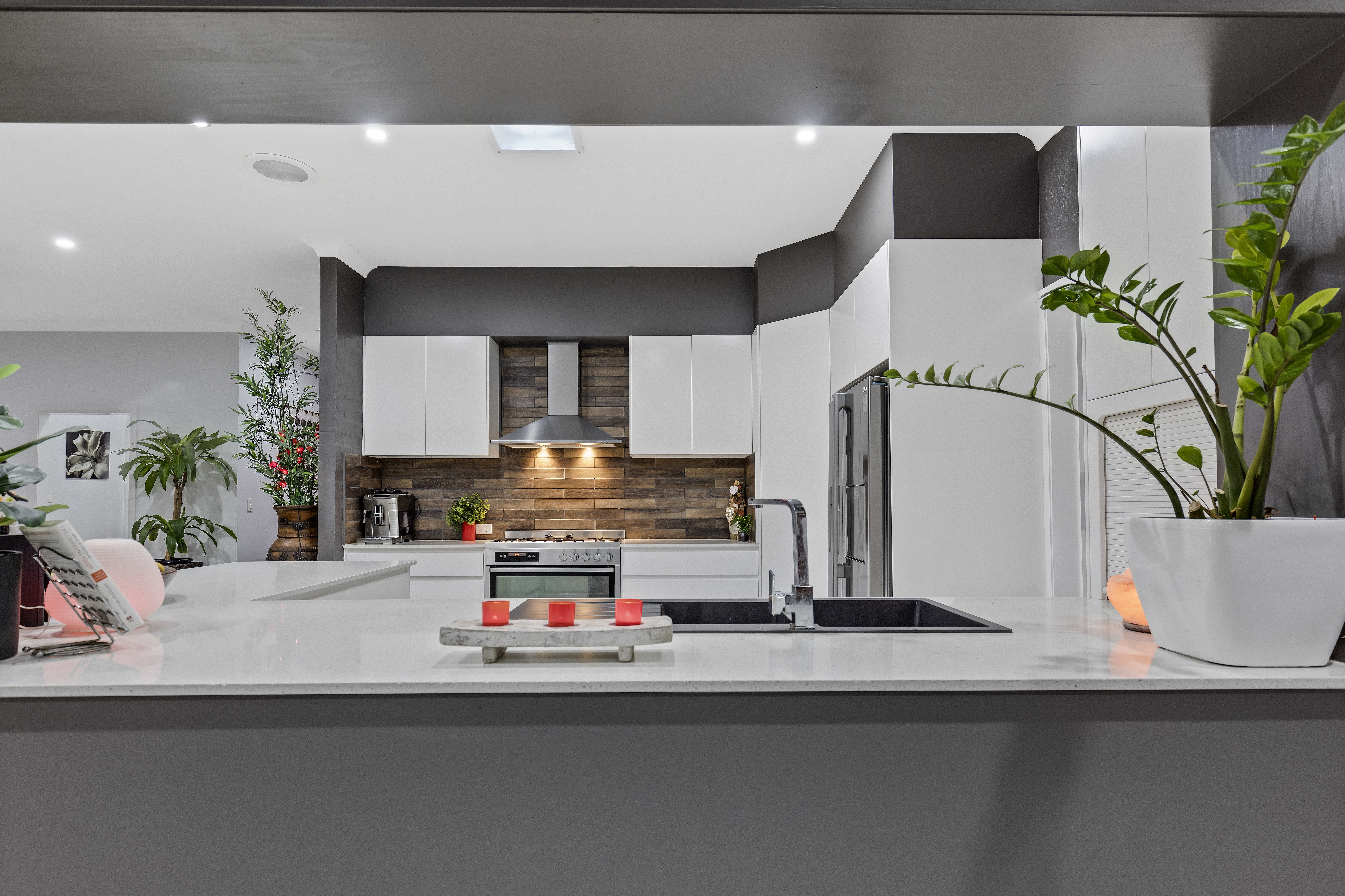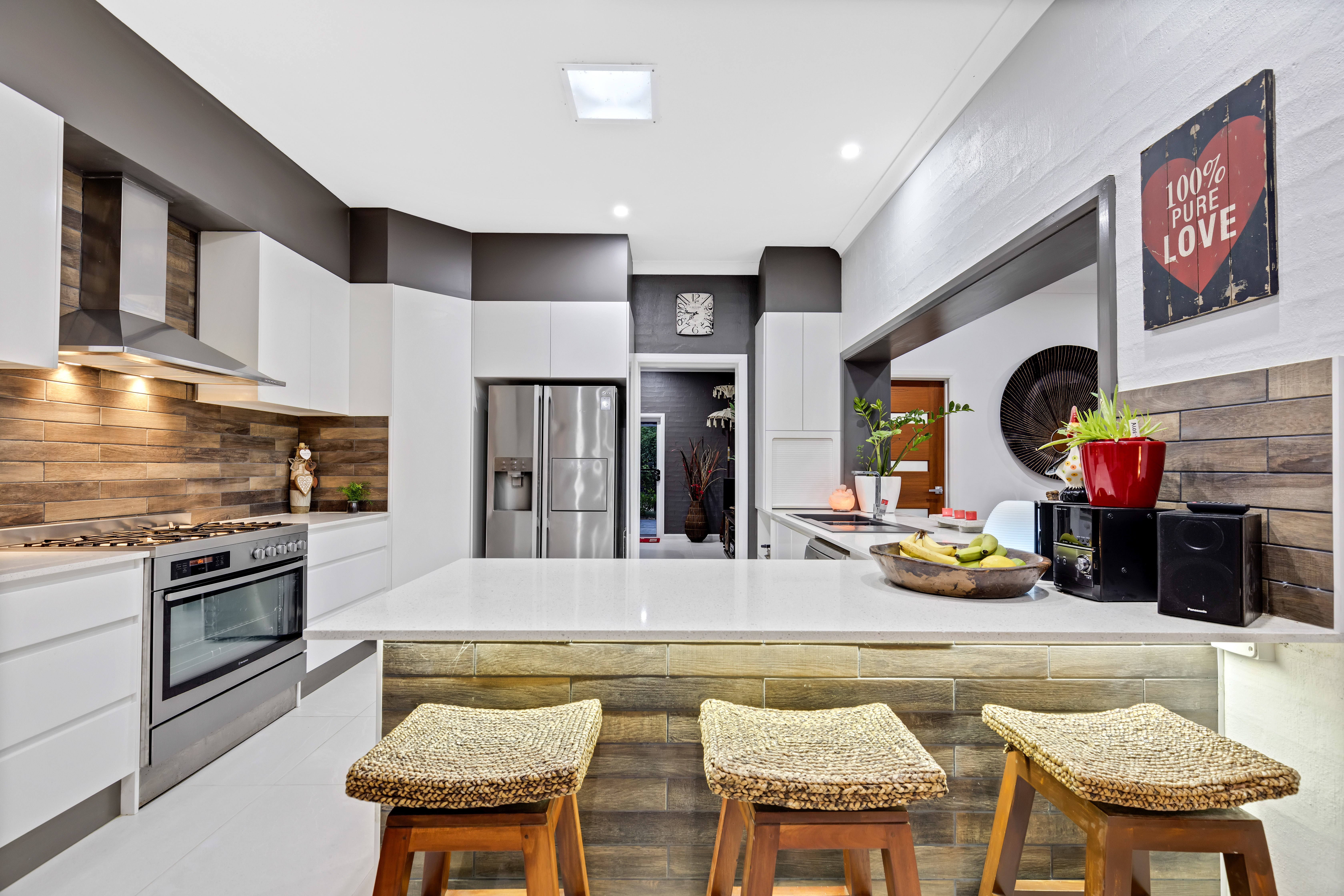 * Stunning 2 pak kitchen, stone benchtops, loads of drawers and benchtop space, 5 burner gas cooktop with 900mm electric oven, plumbed for fridge.