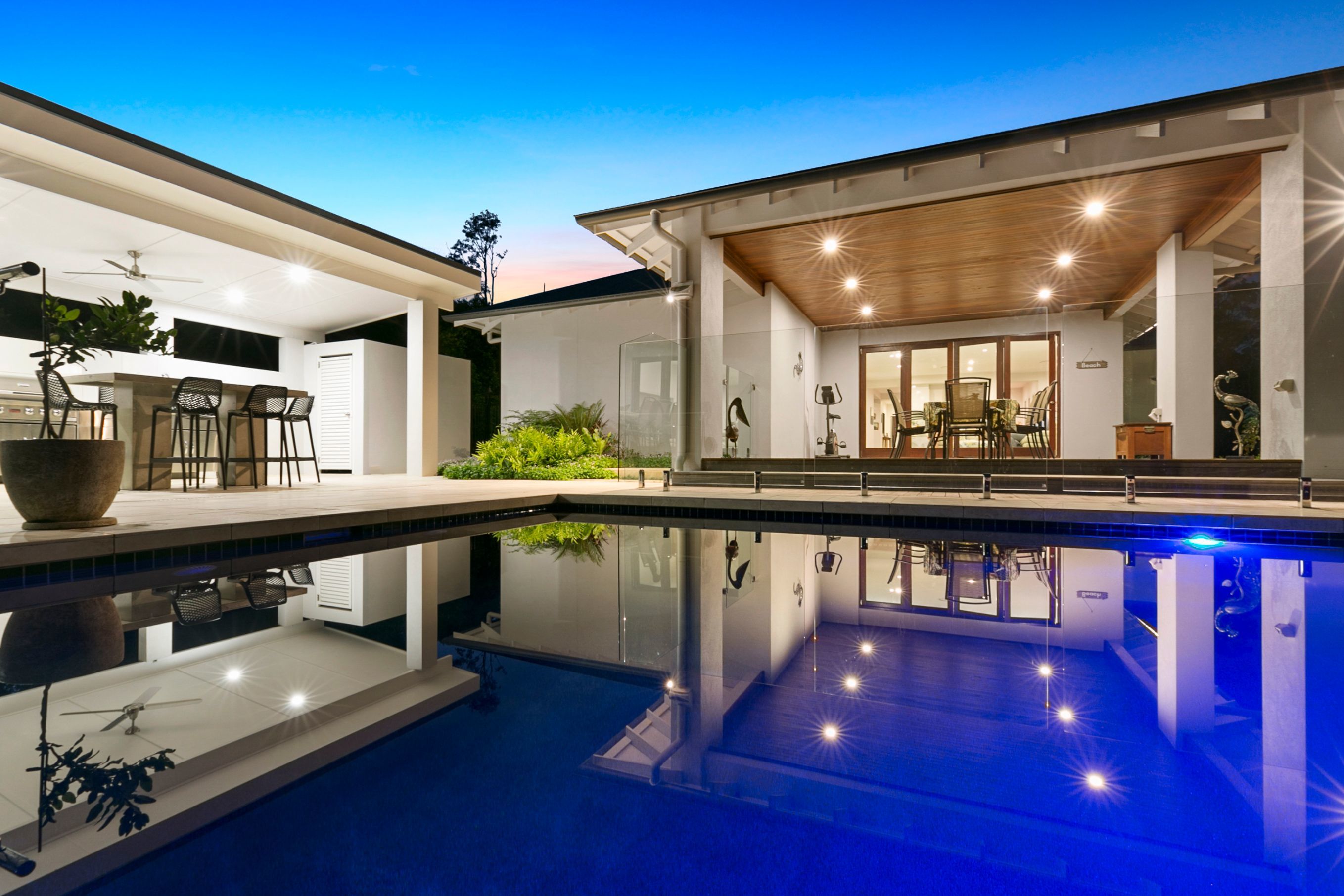 A resort styled oasis that captures an abundance of natural light and gentle breezes. This home was built in 2014 and was carefully and thoughtfully planned by its owners to create a very private haven in the sanctuary of the boutique Coolwater Estate in Rosemount. Queensland’s outdoor lifestyle and warm weather is what we all seek and these Vendors designed a concept that celebrates both family living and outdoor entertaining. The open plan design flows seamlessly from indoor to outdoor where 2 worlds quite simply become one.