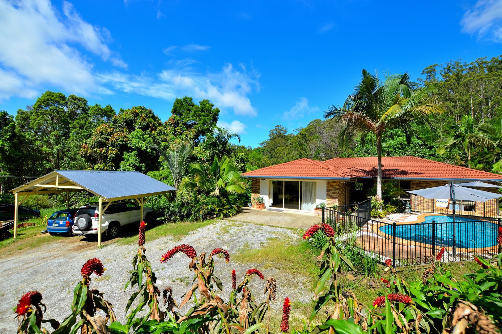 - Double carport high enough for 4WD, room on property for lots of other vehicles