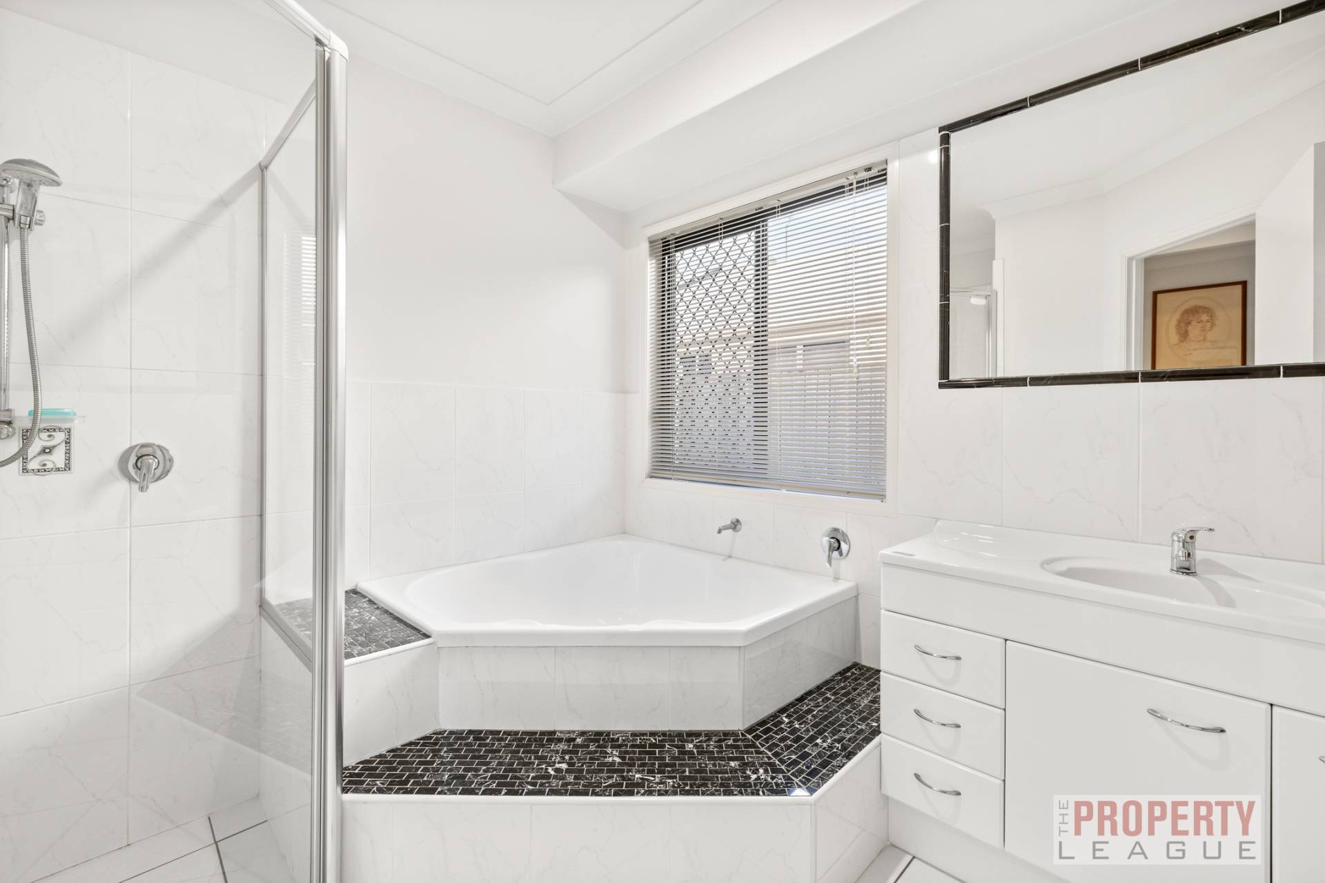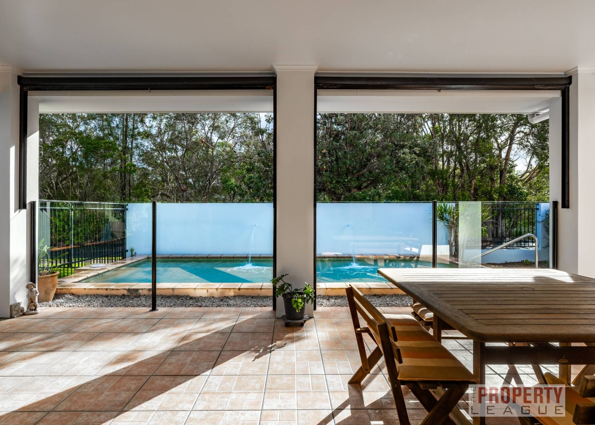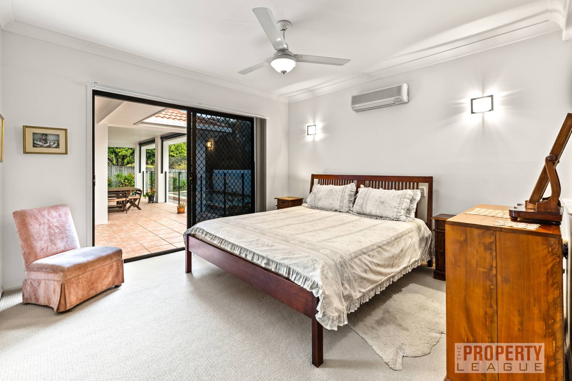 The master retreat, overlooks the tranquil pool and is a private haven complete with an expansive ensuite adorned with floor-to-ceiling tiles, bath, separate shower, separate toilet and double vanity. Year-round comfort is ensured with split-system air-conditioning in both the master suite and main living quarters.