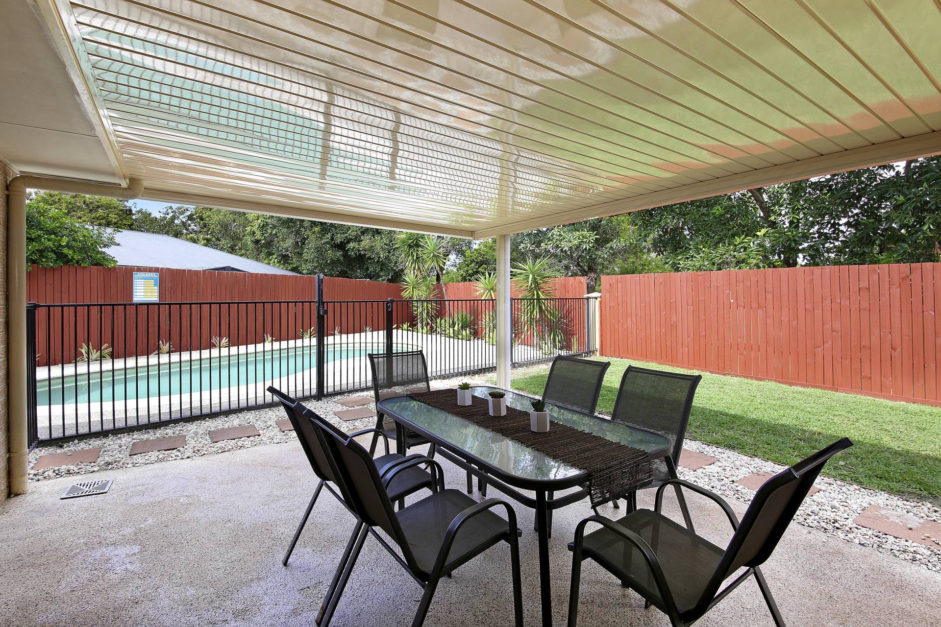 There are 23 panels of solar power and a new hot water service, plus the pool pump and filter were replaced in the last couple of years so there's not a cent to spend, and with such a comprehensive solar offering, there's possibly even more money to be saved!  There's a single carport to the side of the home, side access, and provision for a sail out the front, plus plenty of lawn behind the fence for extra cars if needed.